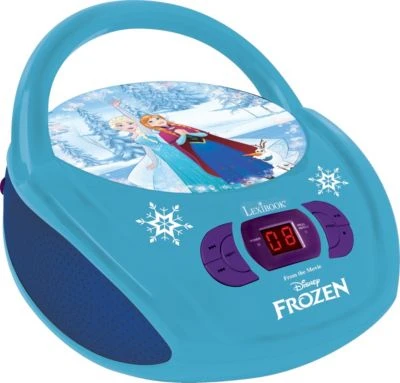 Tragbarer CD-Spieler für Kinder im neuen Die Eiskönigin-Design mit Aux-Anschluss zur Wiedergabe externer Geräte wie Handy oder MP3-Player.