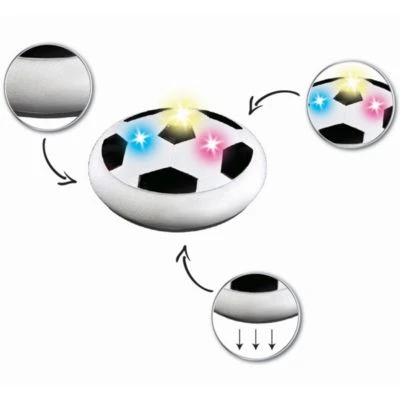 Lexibook Luftkissen Fußball.Die auf einem Luftkissen schwebende Fußballscheibe garantiert schnellen und spannenden Spielspaß!Gleitet sanft auf jeder ebenen Oberfläche.Schaumstoffrand schützt Wände und Möbel vor evtl. Beschädigungen.Dank bunter LED Leuchten auch im Dunkeln einsetzbar.Gleitet auch bei hoher Geschwindigkeit immer auf dem Boden.