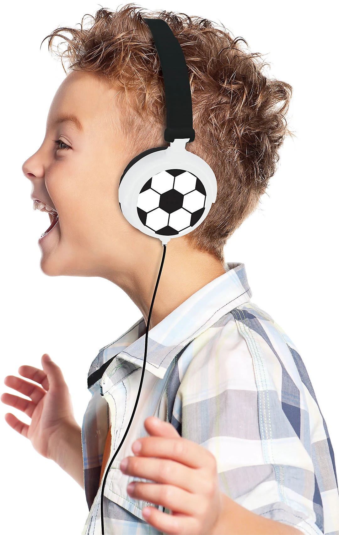 Mit dem Kopfhörer mit Fußball-Motiv liegst Du voll im Trend. Dank der Faltmechanik ist er leicht zu verstauen und gut zu transportieren.