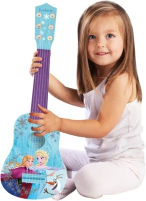 Niedliche Gitarre mit 6 Nylonsaiten aus Kunststoff für erstes Musizieren.