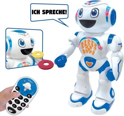 POWERMAN® MASTER, dein erster intelligenter Roboter, der auf Knopfdruck Gedanken lesen kann!Dank seiner künstlichen Intelligenz liest er die Gedanken der Menschen.Man denkt an ein Tier, und der POWERMAN MASTER wird Dir grundlegende Fragen stellen, die Du mit Ja / Nein beantworten kannst und er wird das Tier erraten.Mit der Fernbedienung ist er einfach in alle Richtungen steuerbar.Lernquiz über Tiergeräusche. Programmierfunktion zum Erstellen von Bewegungsabläufen und sogar zum Erstellen neuer Tänze durch Hinzufügen von Musik.Lesen und erstellen Sie ihre eigenden Geschichten. Spielt Musik und tanzt im Takt mit.Schießt Schaumstoffscheiben ab, mit denen Kinder überall zu Hause sicher spielen können. Wiedergabe- und Karaokefunktion inbegriffen.